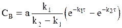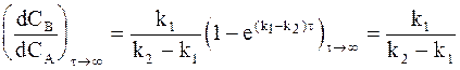 Кинетика накопления вещества В описывается тем же уравнением (а), которое перепишем в иной форме: