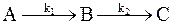 В данной схеме А является исходным веществом, В - промежуточное соединение, С - продукт реакции.