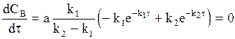 Максимум на кинетической кривой CB = CB(t) наступает при условии