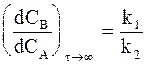 При очень длительном протекании обратимой реакции в системе наступает равновесие. Равновесные концентрации СА,¥ и СВ,¥ зависят от исходных концентраций веществ и констант скоростей: