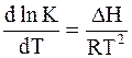 Зависимость константы равновесия от температуры определяется уравнением изобары Вант-Гоффа: