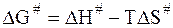 Изменение энергии Гиббса для перехода из исходного состояния частиц в состояние активного комплекса (переходное состояние) DG# определяется изменением энтальпии DH# и изменением энтропии DS#: