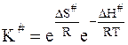При сохранении равновесного распределения скоростей и энергий частиц соотношение между концентрациями исходных веществ и активного комплекса определяется константой K#: