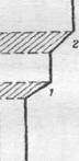 На рис.31 показан профиль притока, снятый глубинным дебитомером. Как следует из этого рисунка, приток жидкости в скважину происходит лишь в двух интервалах (1 и 2).