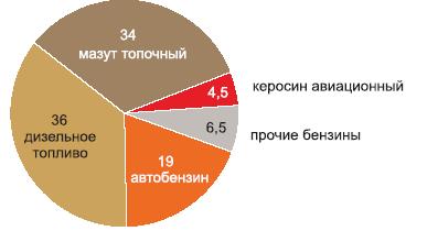 Экспорт российской нефтепереработки составляют главным образом относительно дешевые нефтепродукты, в том числе прямогонный бензин, вакуумный газойль, дизельное топливо низкого в сравнении с европейскими требованиями качества по содержанию серы, а также топочный мазут, базовые масла. Доля товарных нефтепродуктов с высокой добавленной стоимостью крайне мала.