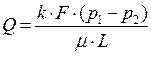 Закон Дарси – определяет расход однородной жидкости через пористую среду при ламинарном режиме потока следующей формулой: