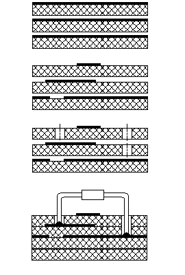 БДП виробляють зі застосуванням операцій, розглянутих раніше. БДП - це комбінація окремих шарів друкованих провідників та ізоляційних шарів.