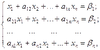 Предположим, что диагональные элементы аii, i = 1- n не равны 0. В любом случае строки и столбцы можно поменять местами так, чтобы диагональные элементы не были равны 0. Разделим каждую строку на ее диагональный элемент: первую строку на