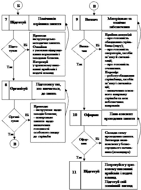 При проведенні польових занять керівник заняття оголошує тему, мету та порядок проведення заняття; вказує на місцевості вихідне положення, рубіж відкриття вогню, основні та небезпечні напрямки стрільби, напрямки та швидкість руху бойових машин; перевіряє знання особовим складом умов виконання вправ і заходів безпеки при стрільбі; доводить бойове завдання командирам взводів (відділень).