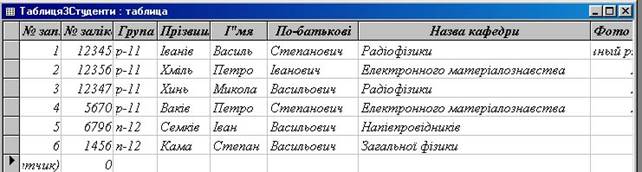 Даний тип запиту використовується для випадку наявності зв’язаних таблиць. Наприклад ми маємо таблицю назв кафедр (рис. ) котра зв’язана з підлеглою їй таблицею даних про студентів (рис. ) зв’язком типу “Один - До-Багатьох” (рис. ).