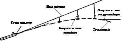 Рис. 2.4. Дія сили тяжіння та опору повітря на політ кулі