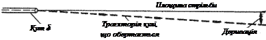 Для стабілізації кулі в польоті за допомогою нарізів у каналі ствола їй надають швидкого обертального руху –до 3000 об/с (рис. 2.6), який викликає відхилення кулі від площини стрільби у бік її обертання. Це відхилення називається деривацією (рис. 2.7).