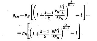 Из уравнения (3.7) видно, что показания прибора, определяемые величиной qCЖ:, не могут быть выражены через скорость, так как в данном случае скорость зависит не только от qCЖ, но и от плотности rн и давления рн. Неоднозначность не устраняется и в случае перехода от истинной скорости V к индикаторной Vi, так как в уравнении еще остается переменная величина рн.