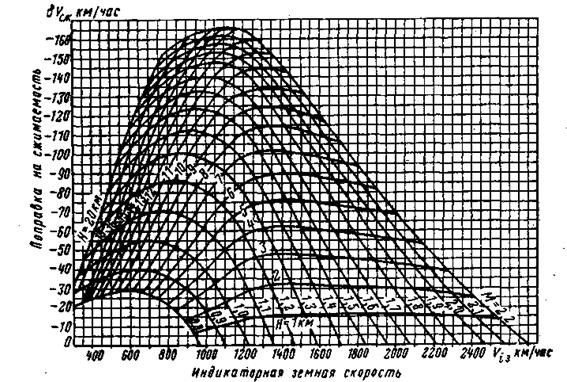 Таким образом поправка на сжимаемость выражает по существу лишь разность между поправками на сжимаемость при полете на одной и той же скорости V[3 на высоте, соответствующей давлению рн и на уровне моря р0.