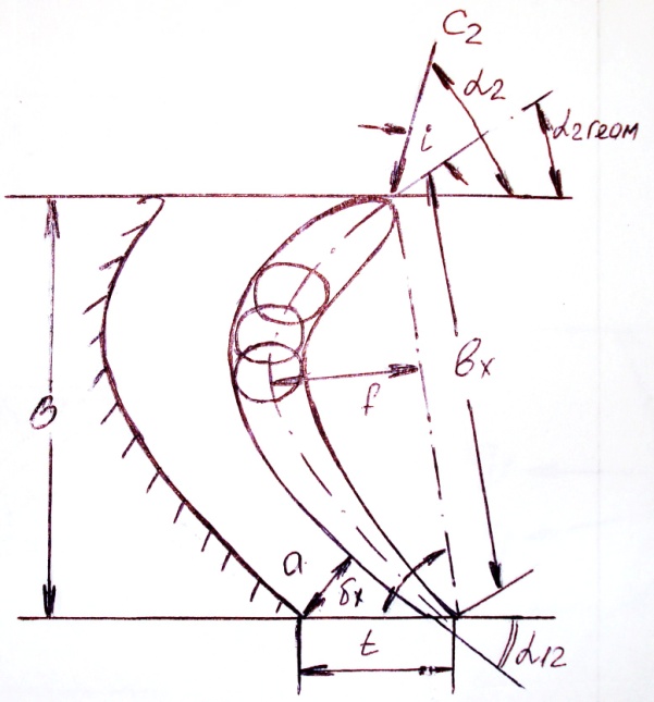 Кроме того, качество профилей, образующих решетку и качество всей решетки в целом зависят от хорды профилиля вх, от угла атаки i, от вогнутости профиля f. Под вогнутостью профиля понимают стрелу прогиба средней линии профиля, представляющее собой геометрическое место центров окружностей, вписанных в профиль.
