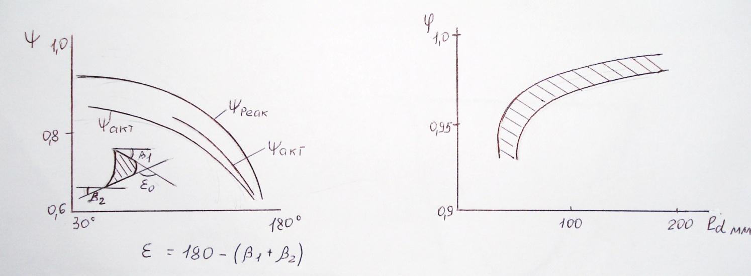 . До возникновения метода статических продувок значения скоростных коэффициентов сопла φ и рабочих лопаток ψ выбирались обычно из опытных графиков в зависимости или от угла поворота струи в рабочем канале или от высоты канала.