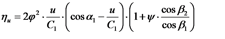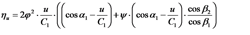 При заданных профилях сопел и лопаток, т.е. при φ - const, ψ - const, β1 и β2 – const, ηu будет зависеть только от выражения