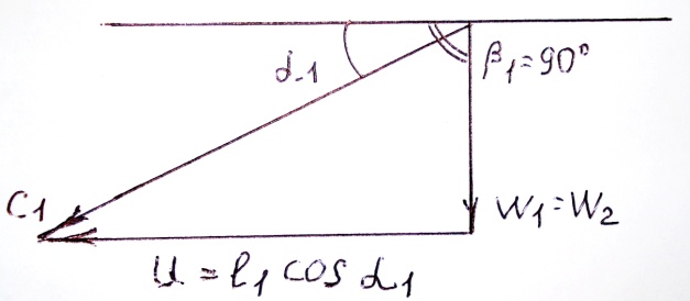 совпадают, т.е. абсолютная скорость потока не претерпевает изменений как по величине, так и по направлению. Работа такой ступени равна нулю. В то же время из треугольников скорости видно, что при заданном угле α1 и заданной величине скорости