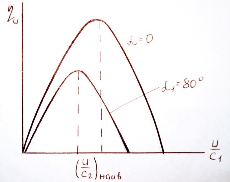 при u/С1 = cosα1/2 → ηu = ηmax