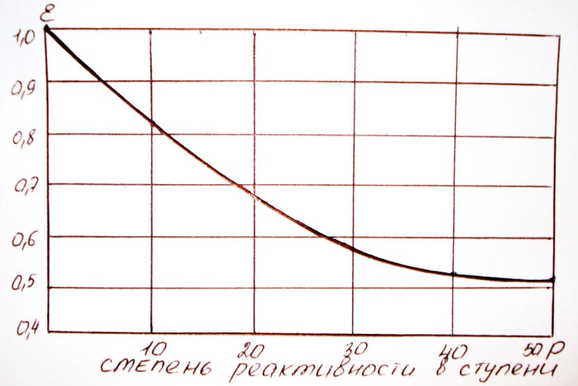 Для ступеней реактивных турбин и активных с реакцией вводится дополнительная поправка в виде коэффициента ε, определяемою по графику.