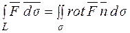 по замкненій лінії L, яка обмежує поверхню s, дорівнює потоку ротора цього векторного поля через цю поверхню.