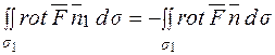 не залежить від виду поверхні s, яка "натягнута" на контур L. Якщо через цей контур провести дві поверхні s1 та s2, то