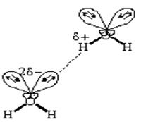 По своей природе водородная связь имеет смешанный электростатический и донорно - акцепторный характер. Электростатическая природа водородной связи, например, в воде, заключается в том, что атом водорода несет избыточный положительный заряд, а атом кислорода - избыточный отрицательный заряд. Электростатическое притяжение между избыточными зарядами атома водорода одной молекулы и атома кислорода другой способствует сближению молекул воды. Одновременно перекрывание электронных облаков одной неподеленной электронной пары кислорода и орбитали водорода другой молекулы воды способствует образованию ковалентной связи. В результате электронная плотность с атома кислорода одной молекулы частично перемещается на атом водорода O-H связи другой. В этом и заключается донорно-акцепторный характер водородной связи.
