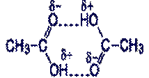 Изображенная на схеме структура уксусной кислоты объясняет, почему молекулярный вес уксусной кислоты в паровой фазе достигает 120 (два молекулярных веса уксусной кислоты).