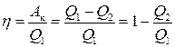 Головною характеристикою будь-якого оборотного циклу є його коефіцієнт корисної дії η, який визначають як відношення корисної роботи Ак до кількості теплоти Q1, яку система отримує від нагрівника протягом циклу: