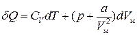 Застосуємо перший закон термодинаміки до одного моля реального газу, щоб отримати вирази для молярних ізохорної СV та ізобарної СP теплоємностей реального газу: