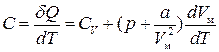 Продиференціюємо рівняння Ван-дер-Ваальса за умови p=const, отримаємо