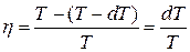 Роботою під час адіабатичних процесів 2–3 і 4–1 ми знехтували, оскільки ΔV1 і ΔV2 є нескінченно малими. Коефіцієнт корисної дії такого циклу Карно