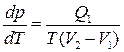 Нехай кількість наданої системі теплоти Q1 дорівнює питомій теплоті пароутворення r=q (теплота фазового переходу). Тоді зміна об’єму системи V2–V1 дорівнюватиме різниці питомих об’ємів насиченої пари і рідини за температури Т і тиску р: