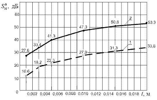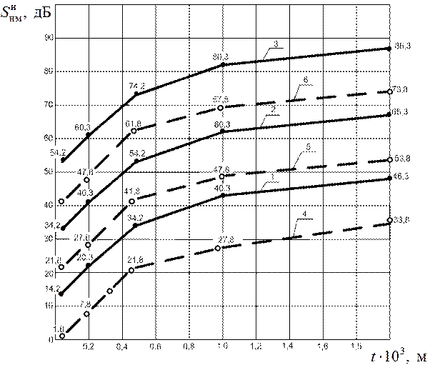 =50 дБ f = 100×103 Гц толщина стенки медного экрана t = 0,4 мм, а латунного – t = 1,3 мм, что приводит к увеличению массы латунного экрана, по сравнению с медным, более чем в 3 раза.