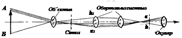 У фокальній площині об’єктива телескопічного прицілу ПСО-1 утримується дійсне перевернуте і зменшене зображення предмета. У цій же площині розміщена і сітка прицілу. При проходженні променів через обертальну систему одержується дійсне і пряме зображення предмета та сітки прицілу у фокальній площині окуляра. Це зображення і спостерігається стрілком через окуляр (рис. 3.8).