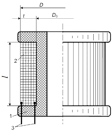 1 – диэлектрический каркас; 2 – электрическая многослойная обмотка;