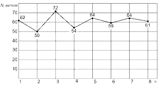 = 0,8 %; N = 62 витка; l = 1,8 cм; D = 1,7 cм; l/D = 1,05 о.е.;