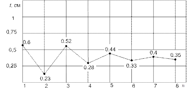 Рис. 5.7. Диаграмма сходимости значения толщины t обмотки дросселя (процедура последовательного приближения функции