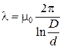 Удельная на единицу длины проводимость Λ между коаксиальными цилиндрами, изображенными на рис. П1.7, определяется по формуле