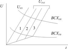 а) ВАХ разрядника и кривой волны перенапряжения;