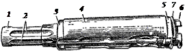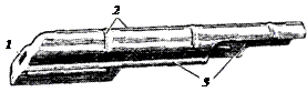 1 – газова трубка; 2 – напрямні ребра для газового поршня; 3 – передня