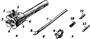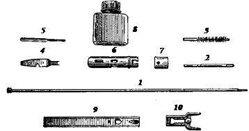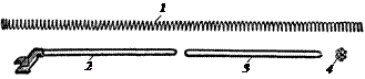 1 – шомпол; 2 – протирка; 3 – йоржик; 4 – викрутка; 5 – виколотка;