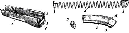 пружина; 3 – отвір для шомпола; 4 – виступ 4 – пружина; 5 – подавач; 6 – опорний виступ;