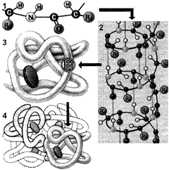 1 — первичная; 2 — вторичная; 3 — третичная; 4 — четвертичная структуры.