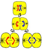 При оплодотворении гаметы сливаются, и их хромосомы объединяются в одной зиготе. Получившийся от скрещивания гибрид становится гетерозиготным, так как его клетки будут иметь генотип Аа,то есть оба аллеля одного и того же гена. У гибридного организма во время мейоза хромосомы расходятся в разные клетки и образуется два типа гамет — 50% гамет будет нести ген А, 50% — ген а. Оплодотворение — процесс случайный и равновероятный, то есть любой сперматозоид может оплодотворить любую клетку. А поскольку образовалось два типа сперматозоидов и два типа яйцеклеток, возможно возникновение четырех типов зигот.