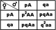 Частоту встречаемости гамет с доминантным аллелем А обозначают p, а частоту встречаемости гамет с рецессивным аллелем а — q. Частоты этих аллелей в популяции выражаются формулой p +q = 1 (или 100%). Поскольку в панмиктической популяции встречаемость гамет равновероятна, можно определить и частоты генотипов.