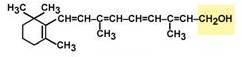 ВитаминА содержится в рыбьем жире, печени морских рыб, каротиноиды – в моркови, красном перце, томатах, в пальмовом и облепиховом масле. Ретинол образуется при окислительном расщеплении провитамина β-каротина. Биохим.ф-ции: антиоксидантная(витамин осущ.нейтрализацию свободных кислородных радикалов),регуляция экспрессии генов многих рецепторов к факторам роста - повыш.чувствительность клеток, участвует в фотохим.акте зрения.
