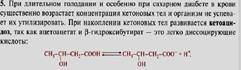 143. Образование кетоновых тел и основные причины усиления кетогенеза. При длительном головании, когда печень выраб.ок.50%жир.к-т в др.источники обр.кетоновые тела- b-гидроксибутират, ацетоацетат, ацетон. В норме их число 1-3мг/дл. Их кл-во так же увелич. При длит.физ.нагрузке, употреблении пищи, богатой жирами, но с низким содерж.углеводов, сахарном диабете. Кет.тела-водорастворимы и могут проходить ч/з гематоэнцефалический барьер и служат ист.энергии для нервной ткани. При избытке кетоновых тел в крови развивается метаболический ацидоз.