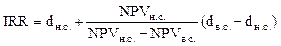 Значения ставок дисконтирования dн.с. и dв.с. подбираются таким образом, чтобы в интервале (dн.с., dв.с.) функция NPV меняла свое значение с «+» на «–». Точность вычислений обратна длине интервала (dн.с., dв.с.).