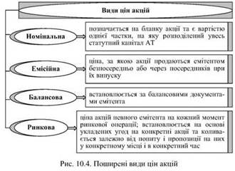 Найпоширеніші види цін акційпредставлені на рис. 10.4.